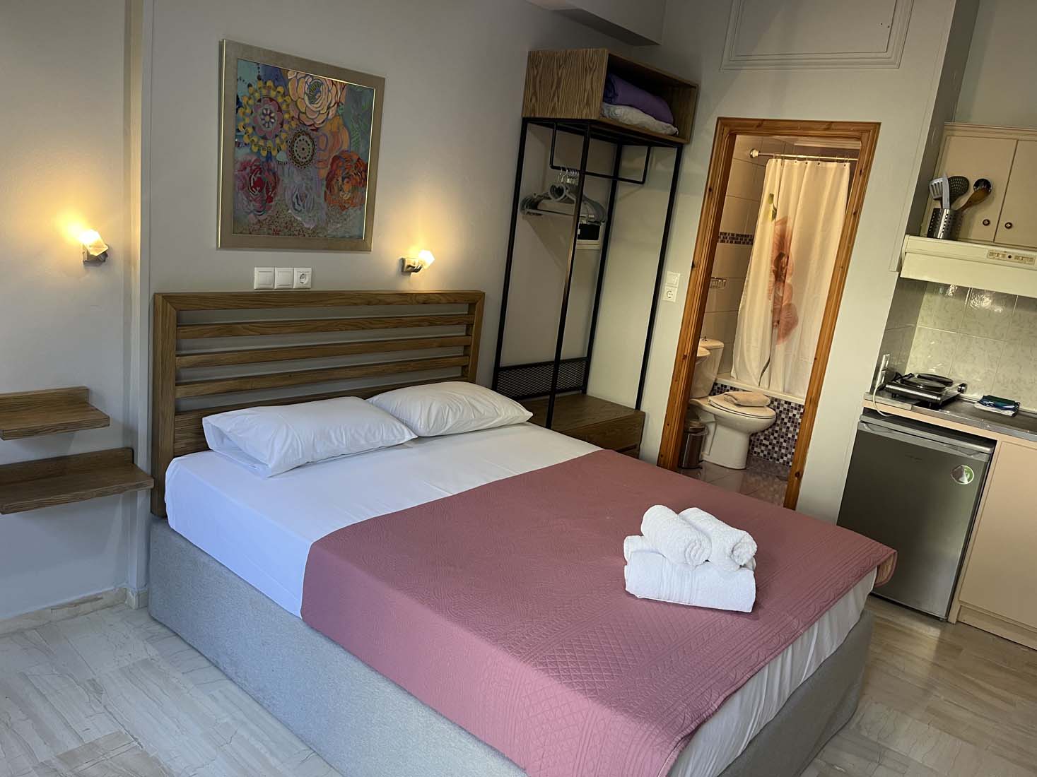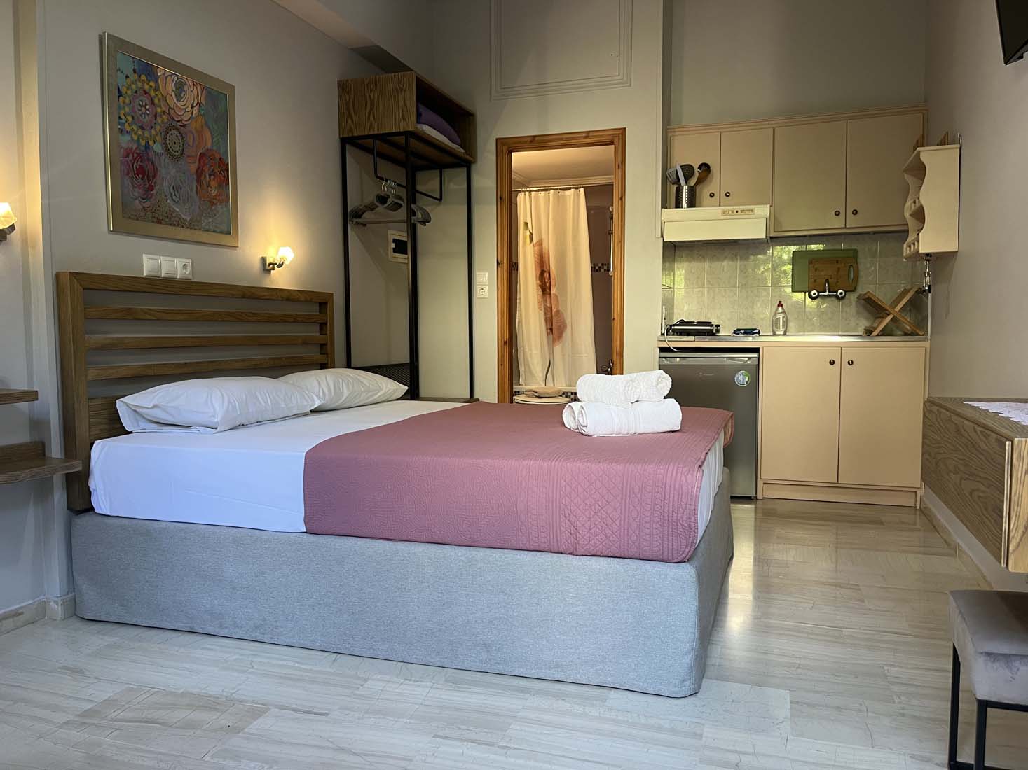 Located on the ground floor these studios have one double bed. An extra bed can be added for a family with a child.